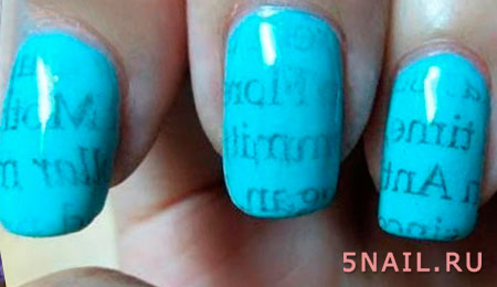 Некоторые дамы предпочитают совершенную экзотику и просто приклеивают газетные кусочки на ногти, покрывая их закрепляющим бесцветным лаком. Это, скорее всего, самый простой способ, но вредный для ногтей.