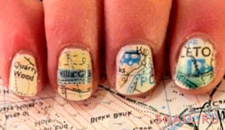 А для тех девушек, которых уже, казалось бы, совсем ничем не удивить, предлагаем сделать ноготки в стиле «карта путешествий» или «обожженная бумага».