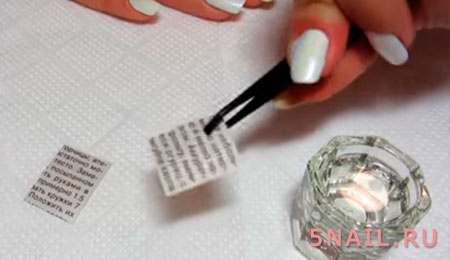 Этот способ предполагает, что на ноготь переносятся только буквы и другие символы. Сама бумага удаляется.