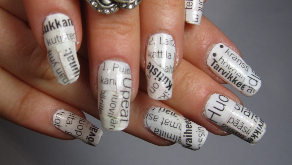 Причиной может быть неправильный выбор бумаги или расплывшийся по неосторожности шрифт. Ничего страшного — следующая попытка обязательно будет успешной!. Какой бы вариант маникюра из газеты вы ни выбрали, результат будет впечатляющим