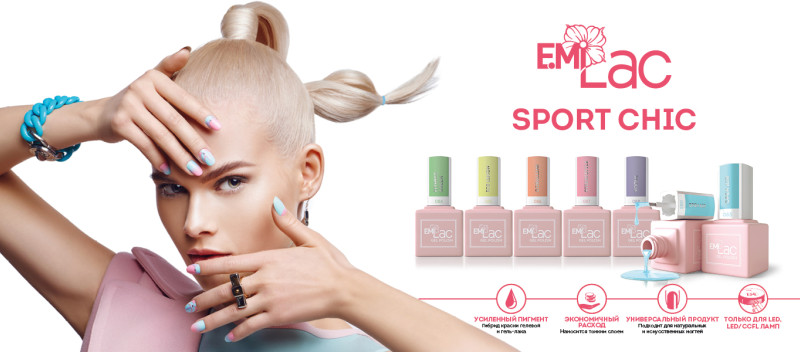 С приходом тепла модницы ищут яркие гель-лаки в насыщенных тонах. Серия Sport Chic, представленная на фото, полностью соответствует данным критериям. Производители обогатили лаки большим количеством пигментов, придав им устойчивости к палящему солнцу и влиянию соленой морской воды. Трехфазные лаки летней коллекции предполагают использование базы и топа Эми.
