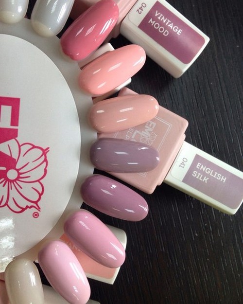 Также среди данной палитры можно найти большое число розовых оттенков: от фуксии до светло-малинового. Помимо этого, присутствуют бежевые оттенки, карамельные, кремовые, белые и слоновая кость. Все данные цвета имеют разные покрытия: как глянцевые, перламутровые, так и матовые. Помимо стандартных вариантов палитры, есть и совершенно необычные, уникальные эффекты, к данной серии относятся неоновые оттенки.