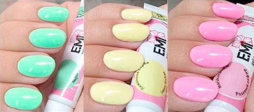 - Эмали – серия гелей-лаков, которая насчитывает около 100 оттенков, актуальных для любого сезона. Эта серия изобилует самыми разными цветами, начиная от нежных оттенков для французских маникюров и заканчивая самыми смелыми и яркими цветовыми сочетаниями.