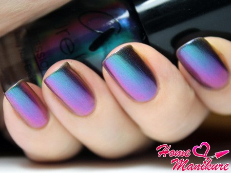 Наиболее эффектный перелив цветов с перламутровым свечением получается на подложке черного и других темных цветов. Причем при дневном и искусственном освещении покрытие смотрится по-разному. На светлой подложке «хамелеон» дает менее выраженное, но не менее красивое таинственное мерцание.