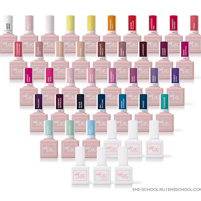 Вся палитра гель-лаков Эми разделена на несколько коллекций, которые можно найти на официальном сайте компании. Мастера для работы предпочитают использовать несколько линеек. В первую очередь, салоны заказывают основную коллекцию, включившую в себя наиболее популярные оттенки. Их используют для создания яркой основы для будущего маникюра. Не меньшей популярностью пользуется Элегантная серия. Сюда вошли восемь нежных тонов с розоватым оттенком.