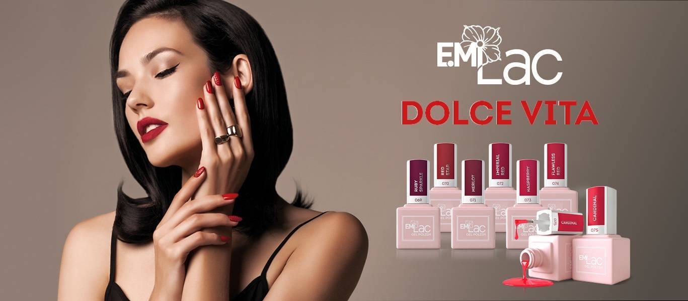 Роскошные, дерзкие сердцеедки оценят шикарную коллекцию «Дольче Вита». Серия включила в себя все варианты красных гель-лаков. Отзывы мастеров утверждают, что, используя лаки из данной серии в совокупности с базой Эми, можно создать потрясающий маникюр. В линейке представлены несколько вариантов от темного лака в классическом стиле до яркого, предназначающегося для дружеской вечеринки или романтического свидания.