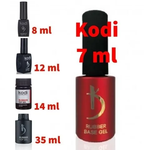 Kodi Professional Gel Polish выпускается в непрозрачных флаконах объемом 7, 8 и 12 мл. База и топ также выпускаются во флаконах по 14 мл. Гели от растяжек также выпускаются во флаконах объемом 14 и 28 мл.
