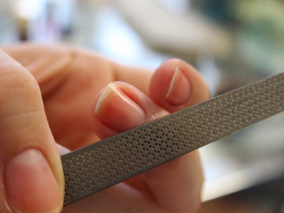 Прежде всего, необходимо подготовить ногти к нанесению покрытия. Кутикула отодвигается, край ноготка подпиливается и ему придаются нужные очертания. С помощью баффа снимается глянец, а ногти обезжириваются