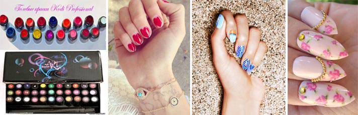 Краска гель выпускается в разной цветовой палитре, подходит идеально для наращённых и натуральных ногтей. Если подходящего тона нет, составы можно смешивать между собой. Этим приёмом любят пользоваться мастера для создания эксклюзивного маникюра. Нанесённый рисунок можно корректировать перед сушкой и во время полимеризации под лампой.