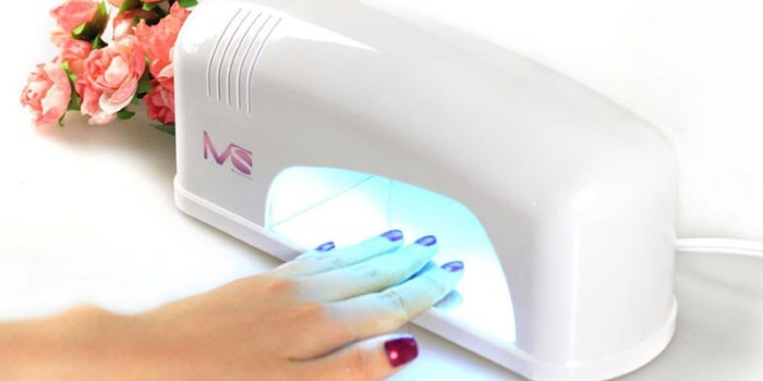 - При устройстве гелевых ногтей нужно помнить, что ни один подобный состав не может пройти нормальную полимеризацию без ультрафиолетового излучения, поэтому специальная лампа должна обязательно входить в арсенал любого мастера. Так что для устройства нормального комбинированного маникюра нужно соблюдать последовательность нанесения и сушки рук под ультрафиолетом.