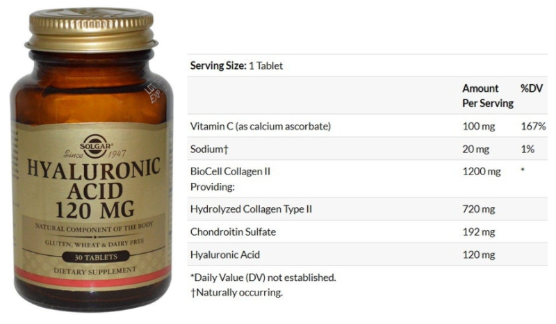 Гиалуроновая кислота Solgar – это препарат американского производства, который представлен следующим составом: