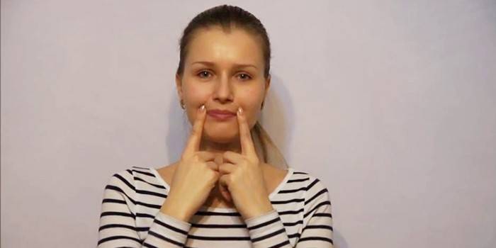 - Указательные пальцы положите на верхнюю часть щек. Слегка надавите.