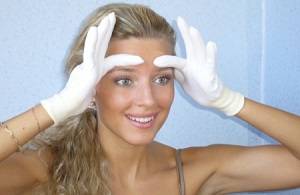 Указательные пальцы поместить на лбу таким образом, чтобы они находились прямо над бровями, имитируя их форму. Затем этими пальцами потянуть кожу слегка вниз и задержать на несколько секунд. Во время выполнения упражнения смотреть вверх. Затем пальцами нажать на лоб и толкательными движениями как бы подталкивать их вверх. Так делать десять раз. Затем брови приподнять вверх и опять повторить толкательные движения. После таких манипуляций, брови оставить в приподнятом положении, но уже пальцами придавливать к низу. Посчитать тридцать раз и расслабить мышцы. Для того чтобы мышца полноценно отдохнула, надо подушечками пальцев сделать самомассаж бровей. Упражнение позволяет укрепить мышцы скальпа и мышцы вокруг глаз.