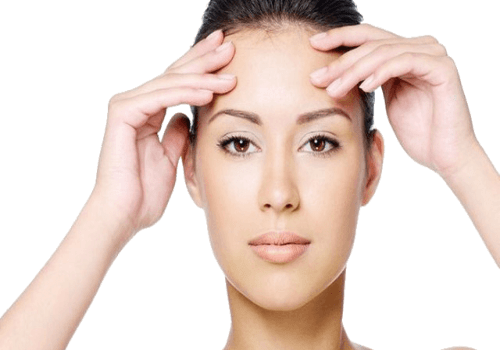 - Первое упражнение из этого комплекса, направленно на разглаживания лобной части лица. Для этого нужно положить на лоб все пальцы, кроме больших, они должны размещаться на висках. Массировать необходимо не только лоб, а ту часть надо лбом, где растут волосы. Чтобы уменьшить горизонтальные морщины на лбу, нужно прижать ладонь ко лбу, и круговыми движениями массировать по линии роста волос. Массировать не менее 15-20 секунд.
