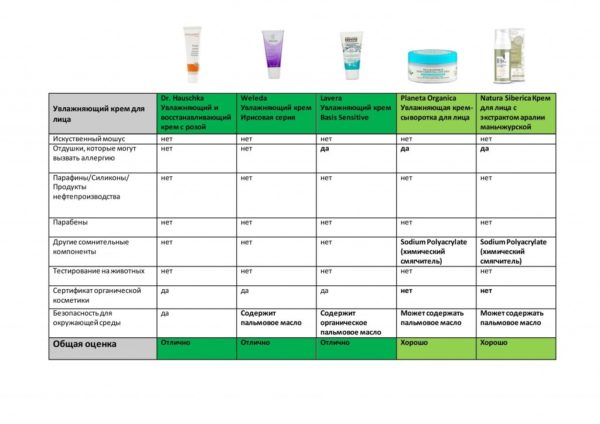 В их составе не должно быть нефтепродуктов, пропиленгликоля, отдушек.