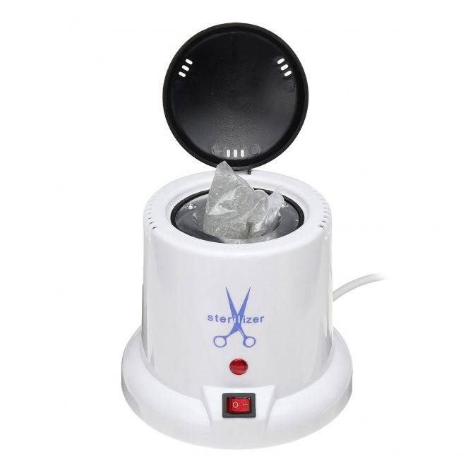 - Кварцевый — компактное устройство с расположенной внутри чашей для засыпки песка. Как правило, применяется для маникюрных инструментов, стерилизует при температуре около 250 градусов, затрагивает только рабочую поверхность инструментов (без рукояток).