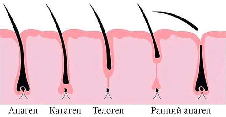 - Ранний анаген. В фолликуле зарождается луковица, старые волоски выпадают, а на их месте начинают зреть новые.