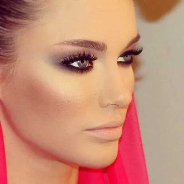 Если у женщины серые глаза сочетаются со смуглой кожей, сделать их более контрастными и акцентированными помогут тени холодных оттенков. Для эффекта сияния можно использовать перламутровые оттенки. Для создания акцента серо-голубых глаз можно использовать всю гамму синих оттенков, коралловые, розовые и пудровые оттенки теней.