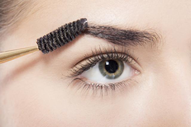 - Подчеркните брови и задайте густоту с помощью теней или карандаша для бровей, после нанесения растушуйте оттенок щеточкой для бровей.