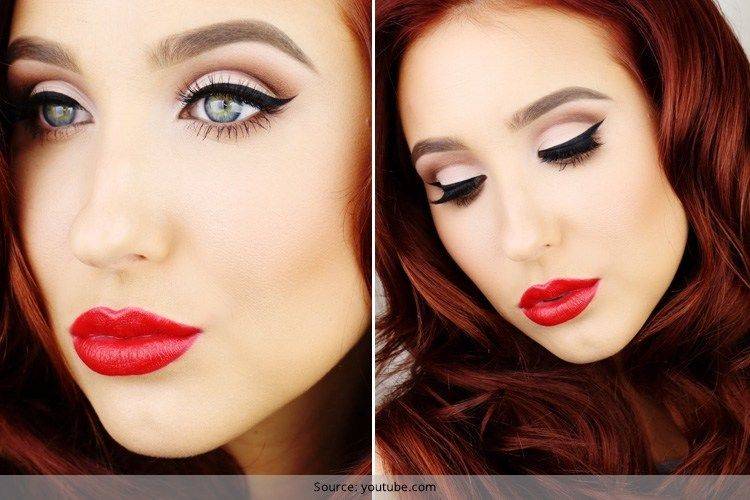 - Красная помада. Тщательно подойдите к выбору цвета и отдайте предпочтение более глубокому и благородному;