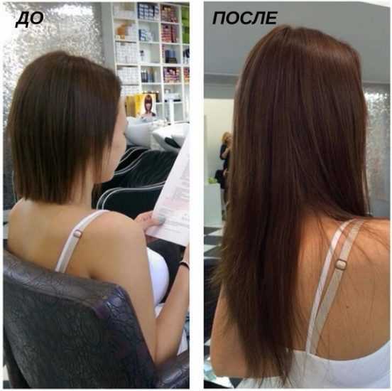 У обсуждаемой процедуры есть свои плюсы и минусы. Чтобы понять главное ее достоинство, нужно просто взглянуть на фото волос до и после. Если изначально это часто бывает короткий хвостик из тонких и ослабленных прядей, то в результате наращивания девушка может бесконечно любоваться длинной, сильной и блестящей шевелюрой.