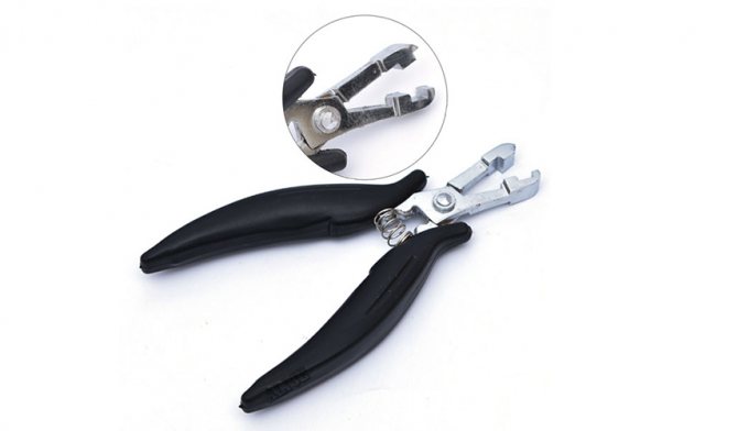 Этот инструмент для горячего наращивания волос может использоваться и для снятия донорских прядок. Щипцы бывают плоскими и со специальными выемками, последним отдается предпочтение, потому что они позволяют работать с кератиновыми капсулами.
