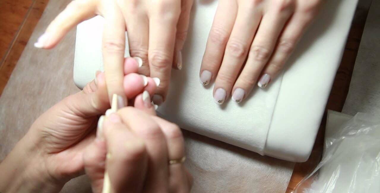 Прежде чем удалить кутикулу, ее нужно размягчить с помощью расслабляющих ванночек. Добавленные ароматические масла усилят расслабляющий эффект. После размягчения кутикулу отодвигают апельсиновой лопаточкой и удаляют щипчиками
