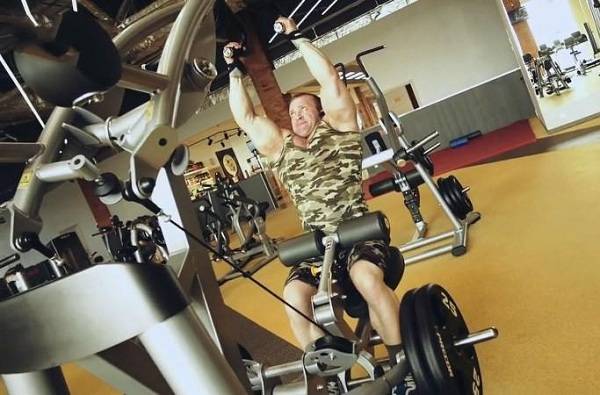 - Рычажная тяга в тренажере используя вертикальные рукоятки.