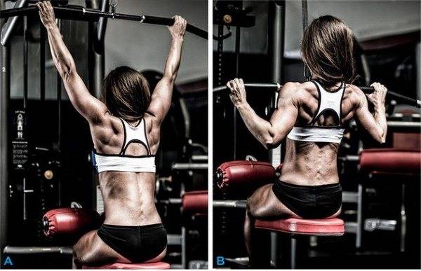 Как уже говорилось, нагрузка смещается при изменении траектории и направления тяги. В случае тяги к поясу, больше прорабатываются верхние участки широчайших мышц спины, а при тяге к поясу – их средние участки.