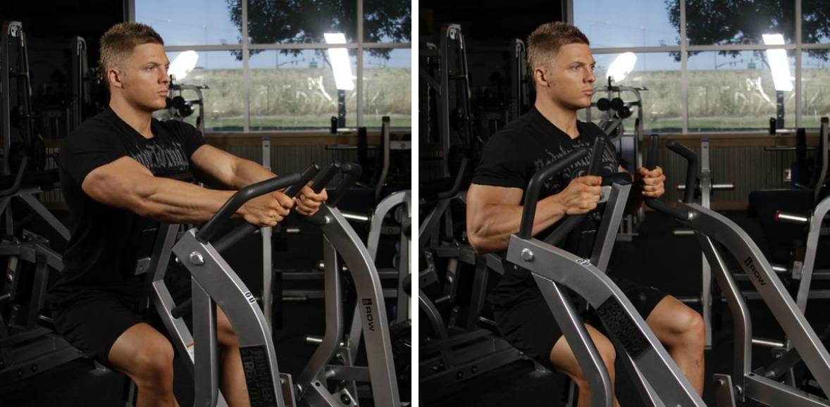 К немаловажной особенности упражнения можно отнести то, что во время тяги ручек тренажера к корпусу дополнительно нагружаются мышцы бицепса. Чем больше вы акцентируете нагрузку на бицепсы, тем меньше она придется на широчайшие мышцы спины. Однако бицепсы являются меньшей мышечной группой, чем спина, поэтому они и устанут раньше