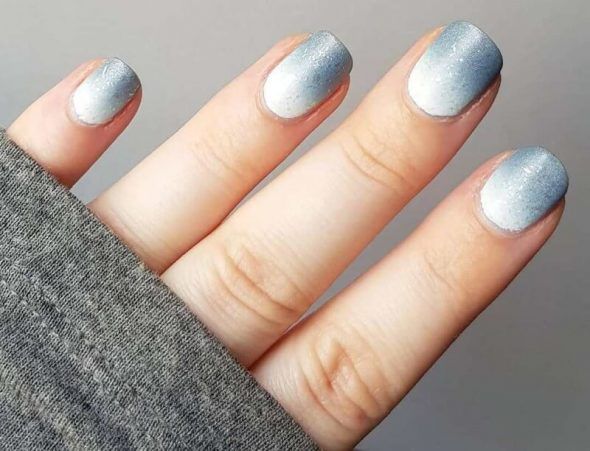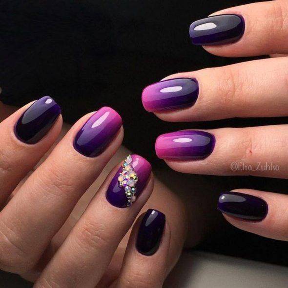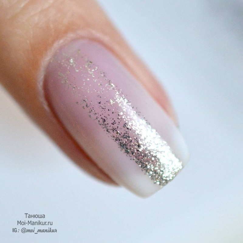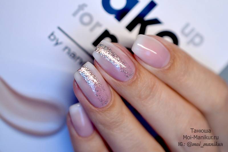 - Блестящий. Как таковой игры цветов здесь нет, используется только один лак. К нему добавляются блестки, количество которых будет уменьшаться ближе к границе перехода.