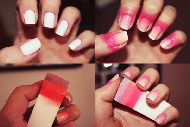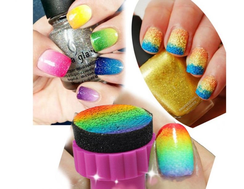| Спонжи | Используются при создании градиента до нанесения на ногти | Фольга, аппликатор для теней, губка для мытья посуды и прочее |