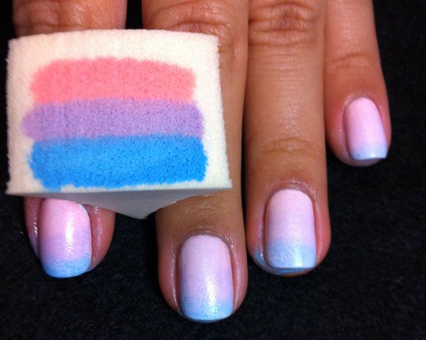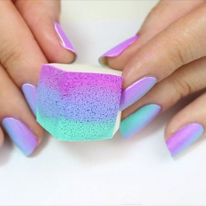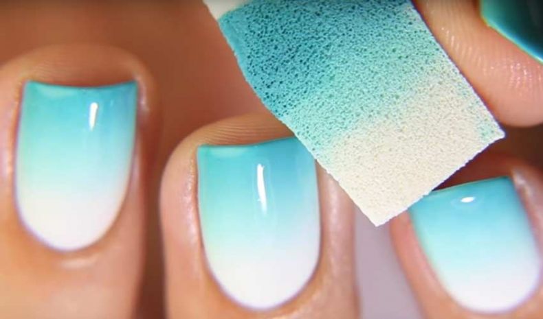 Популярный, простой и проверенный способ создания градиента. Можно работать как специальной губкой для омбре, так и взять обычную, кухонную, с мелкими порами. Альтернатива – губка для мытья машины. Обычно это мелкопористые большие губки, такого запаса хватит надолго.