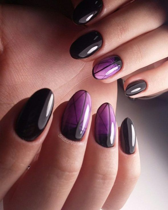 Интересным ходом будет сочетание градиента и негативного пространства. Но выполнить такой прием довольно сложно. С плавными цветовыми переходами не стоит сочетать украшения, которые перекрывают полностью всю площадь пластины. Так как в этом случае градиент просто потеряется.