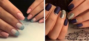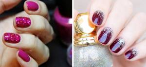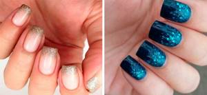 - Блестящий. Как таковой игры цветов здесь нет, используется только один лак. К нему добавляются блестки, количество которых будет уменьшаться ближе к границе перехода.