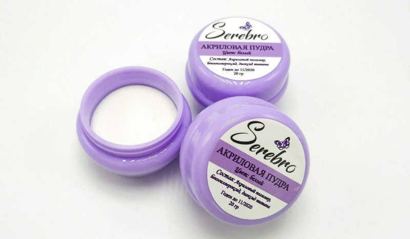 Акриловая пудра. Представляет собой полимерный порошок, который при контакте с базой застывает и формирует прочное, пластичное покрытие. Пудра может иметь разные оттенки. С её помощью выполнить градиентный маникюр можно даже без наличия навыков.