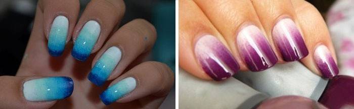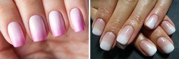 Если выполнять омбре гелями-лаками, то существенных отличий от покрытия обычными лаками не будет, за исключением необходимости полимеризации каждого слоя.