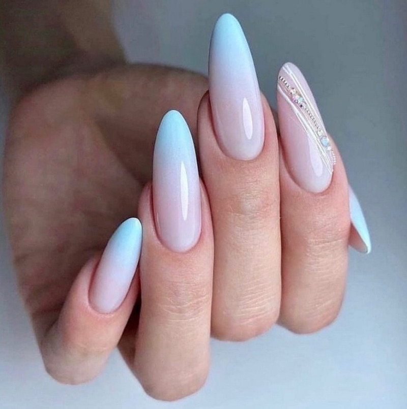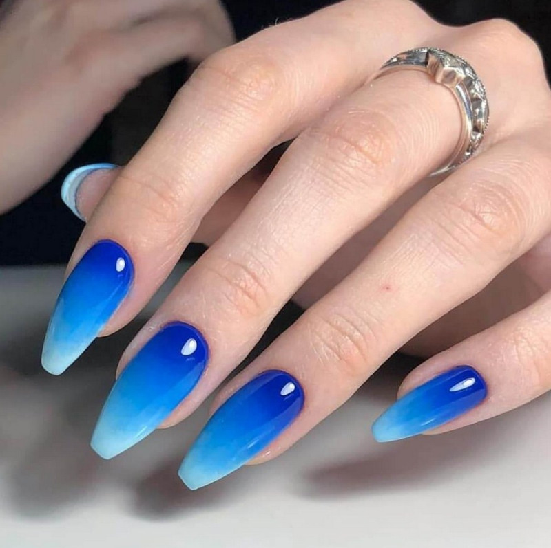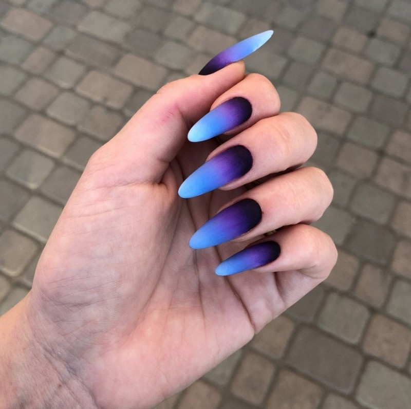 Выбор оттенков и техник для дизайна на длинные ногти практически не ограничен. Тем не менее, с градиентной методикой нужно быть осторожнее.
