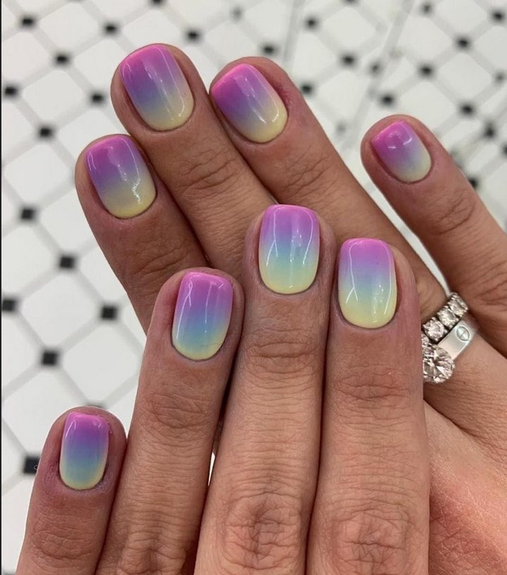 Маникюр в стиле омбре с градиентными переходами освежит повседневный стиль, а также поможет сделать ногти праздничными или яркими в зависимости от случая. Техника нанесения переходных цветов очень проста в применении и не займет много времени, а приспособления для маникюра и пара цветных лаков найдутся у каждой девушки.