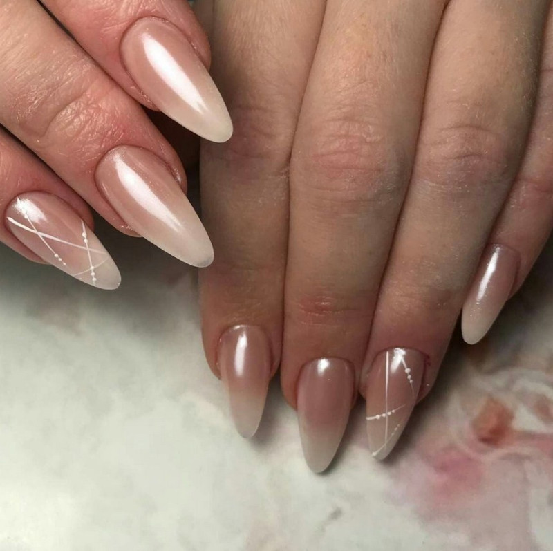 В домашних условиях проще всего сделать градиент с помощью простой губки. Для этого необходимо покрыть ноготки основным светлым оттенком. Чаще всего это белый, бежевый или светло-розовый цвет.