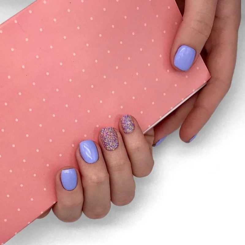 Еще одно праздничное сочетания маникюра – лак и глиттер с блестками. Относить к ним правила сочетания или нет – решать вам. Тут скорее нужно отталкиваться от праздничного наряда, который на вас будет надет, и макияжа. Темное, вечернее платье с красной помадой вдохновляет на яркий алый лак и фиолетовые или синие блестки. Если вы невеста, и впереди свадебная церемония, то белый цвет и серебряный глиттер – идеальная комбинация для маникюра.