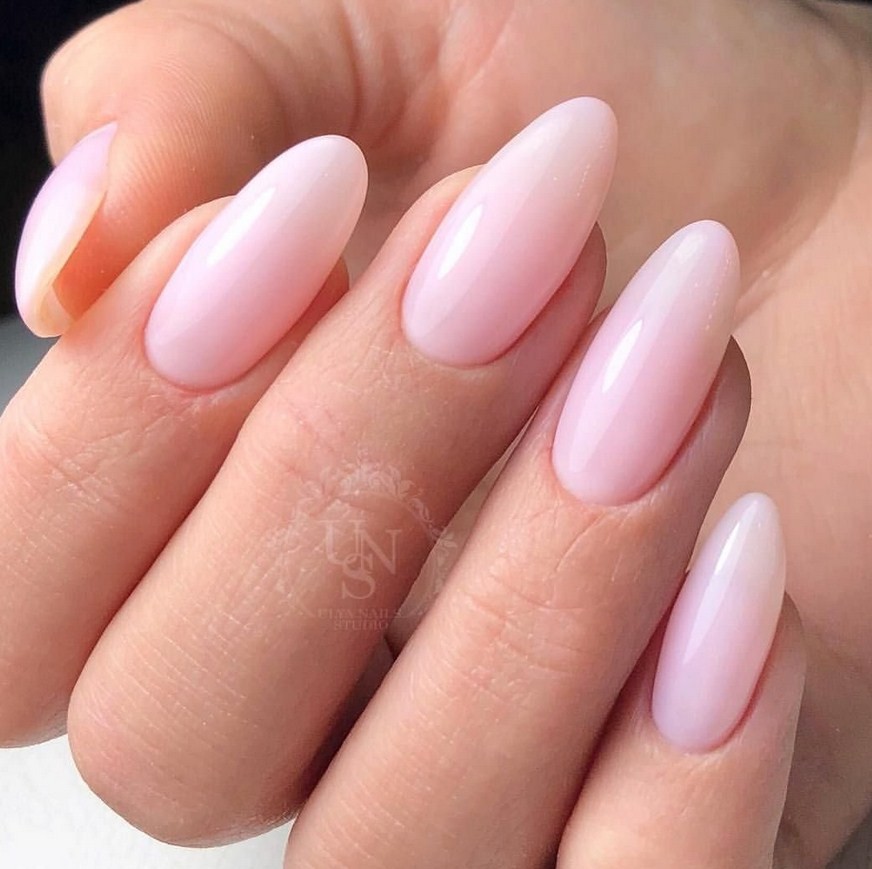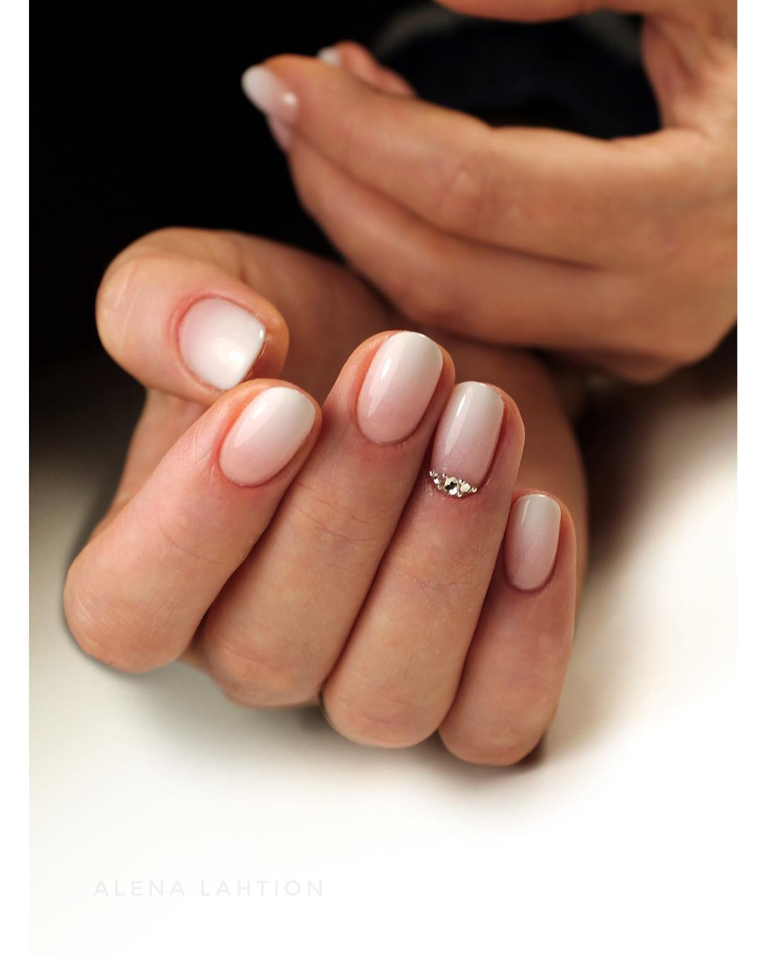 В домашних условиях проще всего сделать градиент с помощью простой губки. Для этого необходимо покрыть ноготки основным светлым оттенком. Чаще всего это белый, бежевый или светло-розовый цвет.