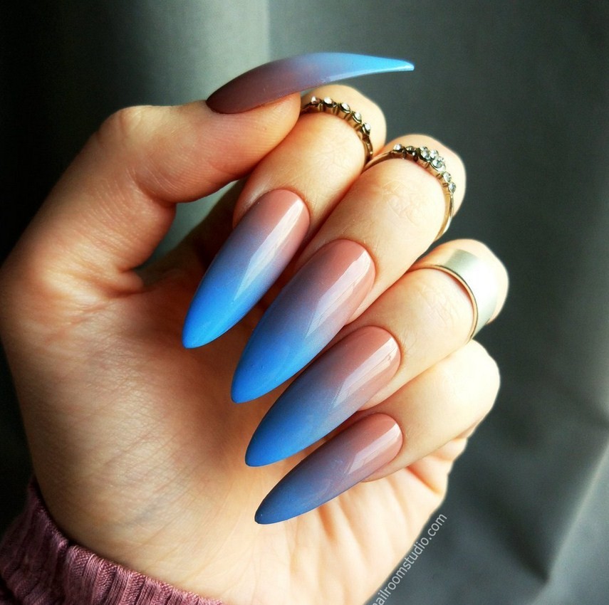 Выбор оттенков и техник для дизайна на длинные ногти практически не ограничен. Тем не менее, с градиентной методикой нужно быть осторожнее.