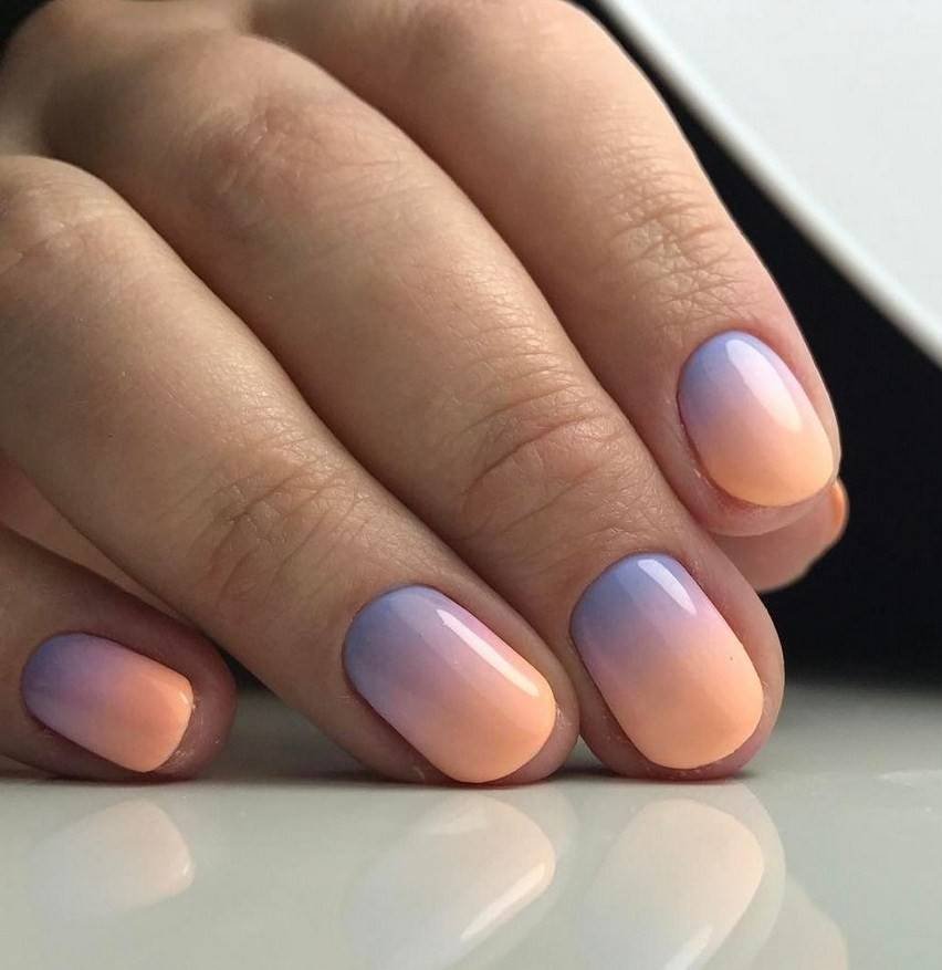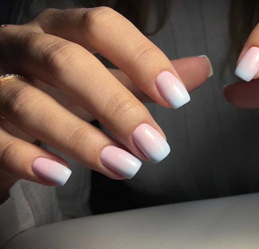 Такой маникюр будет держаться намного дольше, но и потребует большего умения. Вам стоит серьезнее отнестись к выбору цветов градиентного маникюра гель-лаком, ведь он наносится на длительное время и удалить его будет сложнее. Также будут необходимы специальные средства и приборы для сушки такого маникюра.