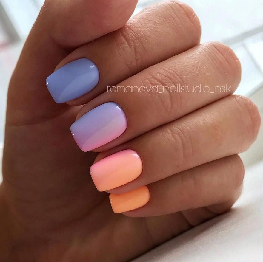 В градиентном маникюре, как и в любой другой сфере моды, есть определенный модные цвета. При выборе цветов, без сомнений, в первую очередь нужно опираться на собственные предпочтения, но с учетом некоторых модных тенденций.