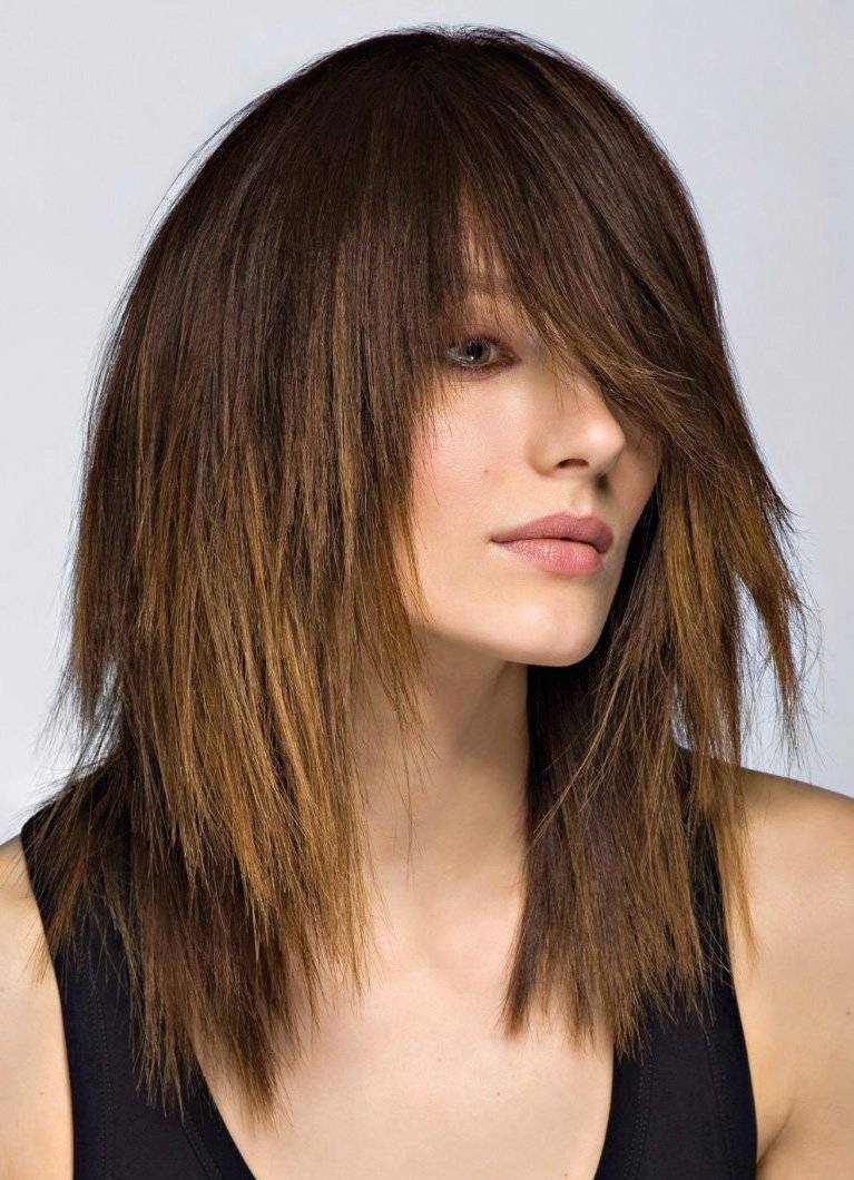 Эта модель может выгодно скорректировать внешность. Прореженная, длинная плавно сливающаяся с боковыми локонами, придаст изящества квадратному, удлиненному лицу. Их носят с прямыми и косыми проборами. Чтобы найти подходящий вариант, четко определите свою форму.