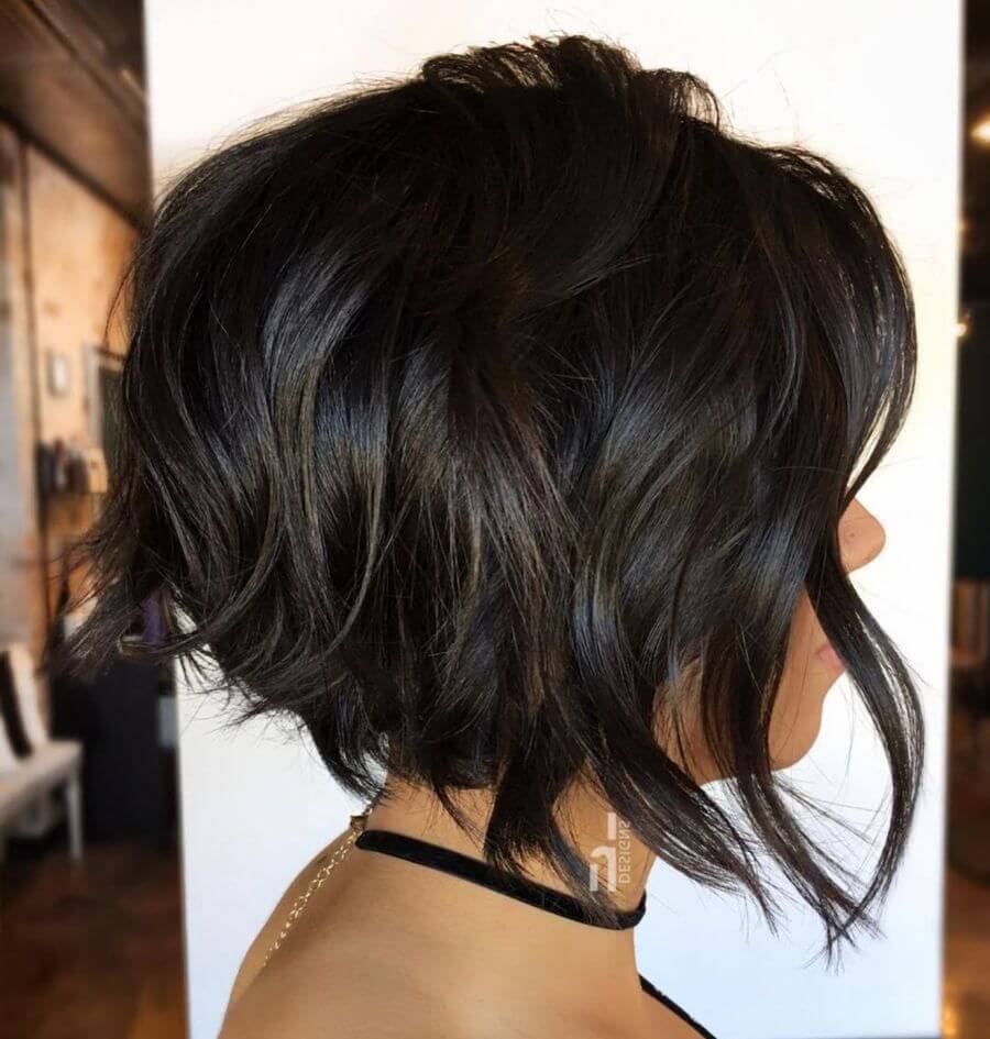 - Градуированный каскад на короткие волосы с применением элементов стрижки лесенкой весьма интересно смотрится на женщинах старшего поколения. Применяются темные цвета окраски волос, можно с добавлением техники балаяж. Стрижку проводят от макушки к вискам и затылку. Сочетание градуировки и техники лесенка производит омолаживающий эффект.