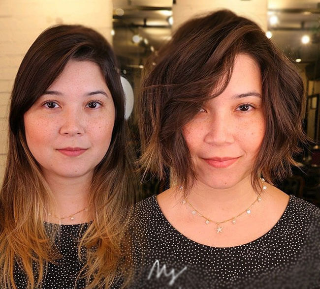 - Со ступенчатой прической больше сочетается боковой пробор, чем косой.
