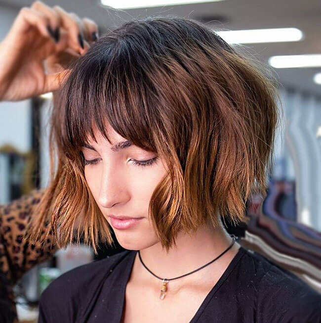 Наличие челки отлично дополняет стрижку. Форма разнообразна: прямая, косая, густая, короткая, рваная, по бокам, удлиненная