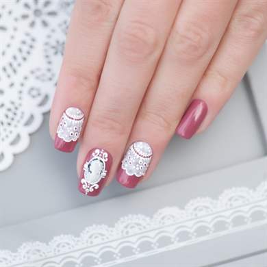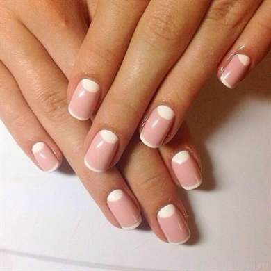 Один из самых элегантных способов украшения ногтей – французский маникюр. При выполнении классического французского маникюра на ногти наносят основу, дают ей подсохнуть и покрывают ногти лаком естественного цвета. Лучше всего использовать прозрачные лаки нежных оттенков. Когда этот лак высохнет, на кончик ногтя наносится белый лак, и затем покрывается белым лаком весь свободный край ногтя. Покрытие лучше начать с правого бокового края, проводя кисточкой к середине ногтя, а затем повторить то же самое с левой стороны. После высыхания этого слоя нанесите на весь ноготь слой розового лака одним или двумя слоями, и в заключение покройте ногти закрепителем.